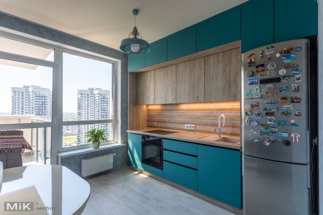 Для кухонного пространства, не всегда большого, в качестве основного лучше выбрать наиболее светлый оттенок, так как он создаст ощущение простора. Для того чтобы еще больше усилить его, следует отказаться от классических штор и занавесок. Их лучше всего заменить укороченными занавесками на окне или рулонной шторой. В сочетании со светлыми стенами и потолком, обилие проникающего через окно света сделает помещение более воздушным и светлым.